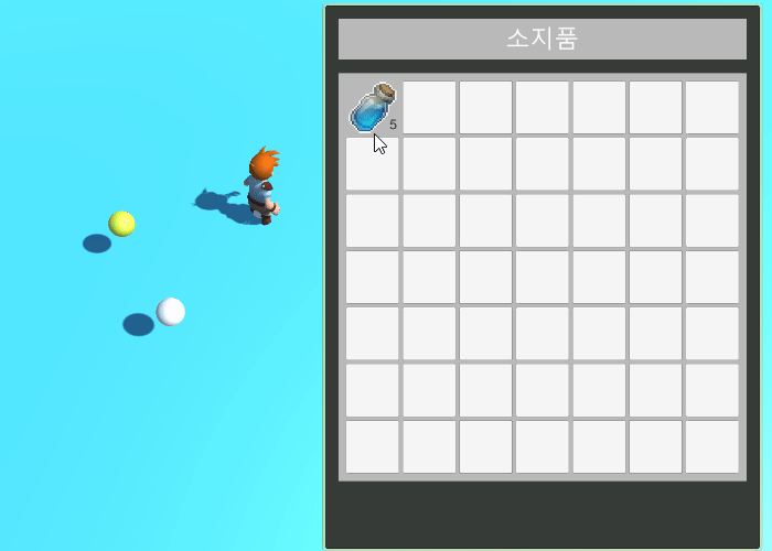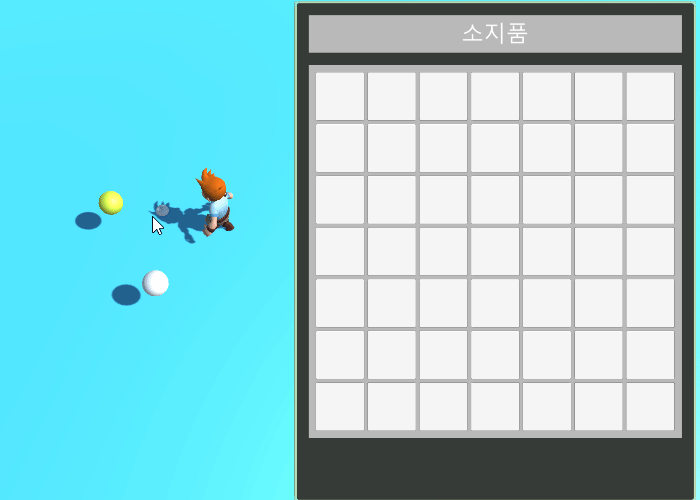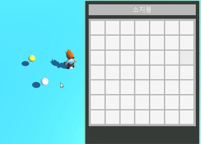 아이템 획득 시 인벤토리의 왼쪽 상단부터 자동으로 채워지게 된다.